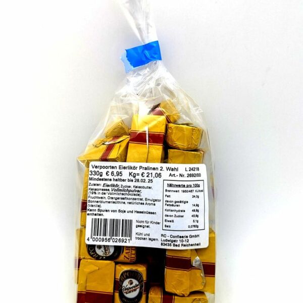 Die Pralinen weisen unter Umständen Mängel an der Folierung oder der Außenseite auf.